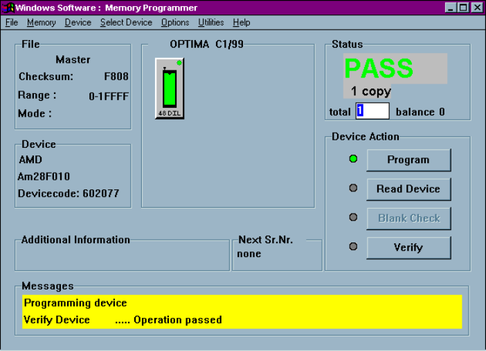 (OTP) device, the Optima software will test to see if the pattern in memory can be