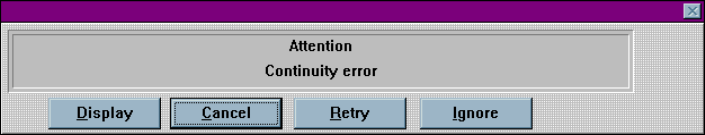 software prompts you to <Display> the pin(s) in error, <Cancel> the operation,