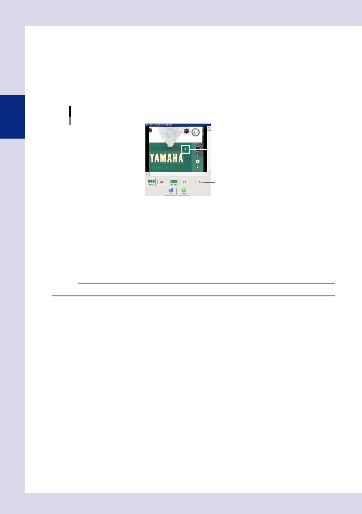 By pressing the [Thresh] button, a "Bad mark threshold value setting" screen appears. Set the threshold