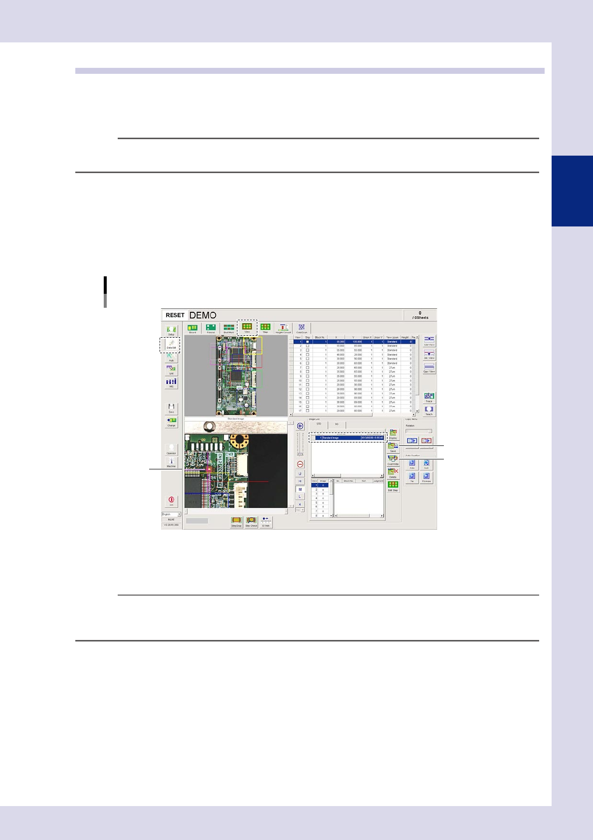 2-29 2 Creating inspection pr ograms 2.6 View settings A "view" is the camera field-of-view used b y the the inspection machine to inspect a board. In the view settings, views are set for locations on the board…