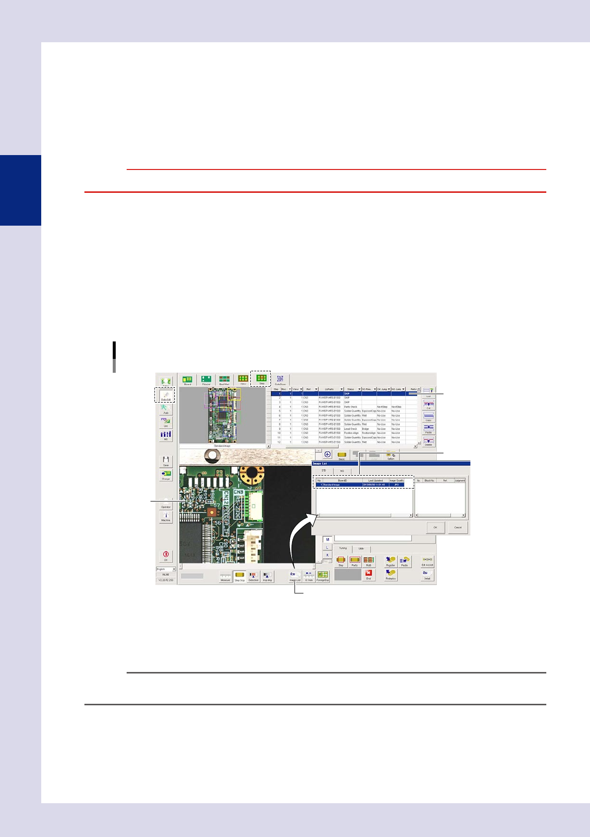 tab, open the "Image List" screen, select a board ID, and then press the [OK] button.