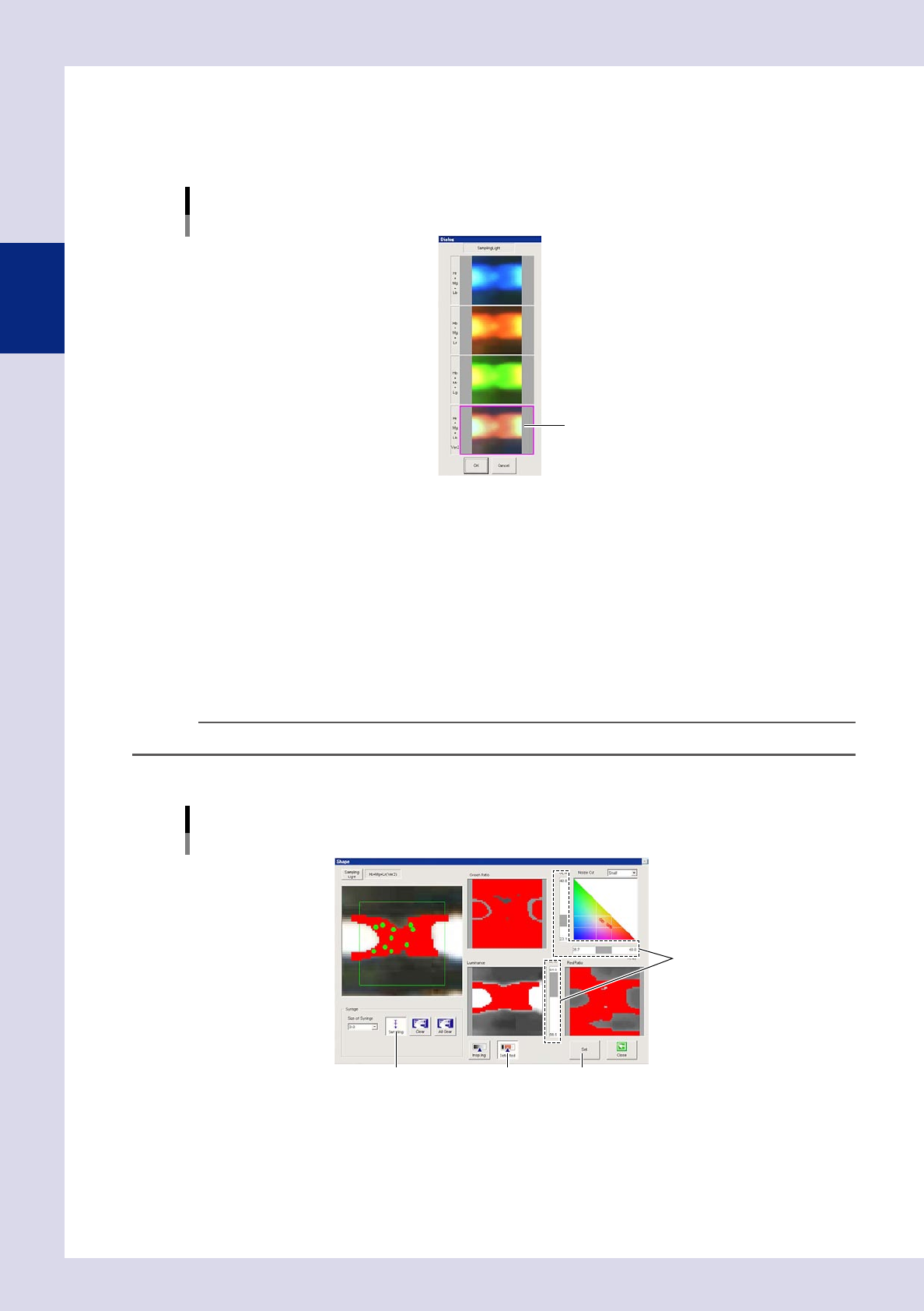 2. Press the [Sampling] button, and then click the location to be detected in the upper left image. The