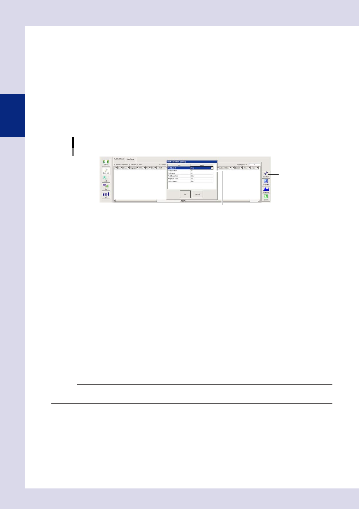 Press the [Condition] button to select the test conditions.
