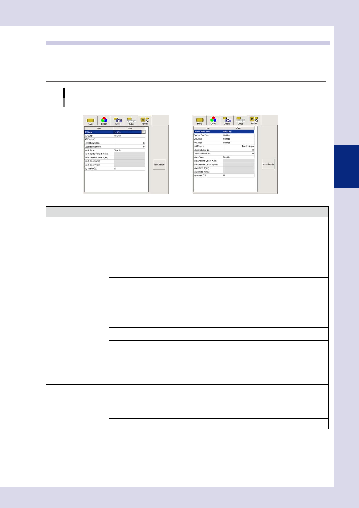 Mask Size Y(mm) Sets the inspection mask Y direction size.
