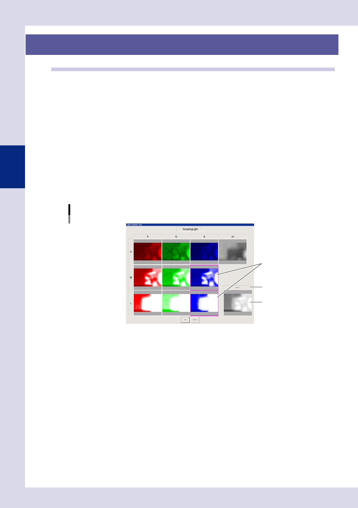2. Press the [Sampling Light] button to open a sampling light type screen, and select up to two images