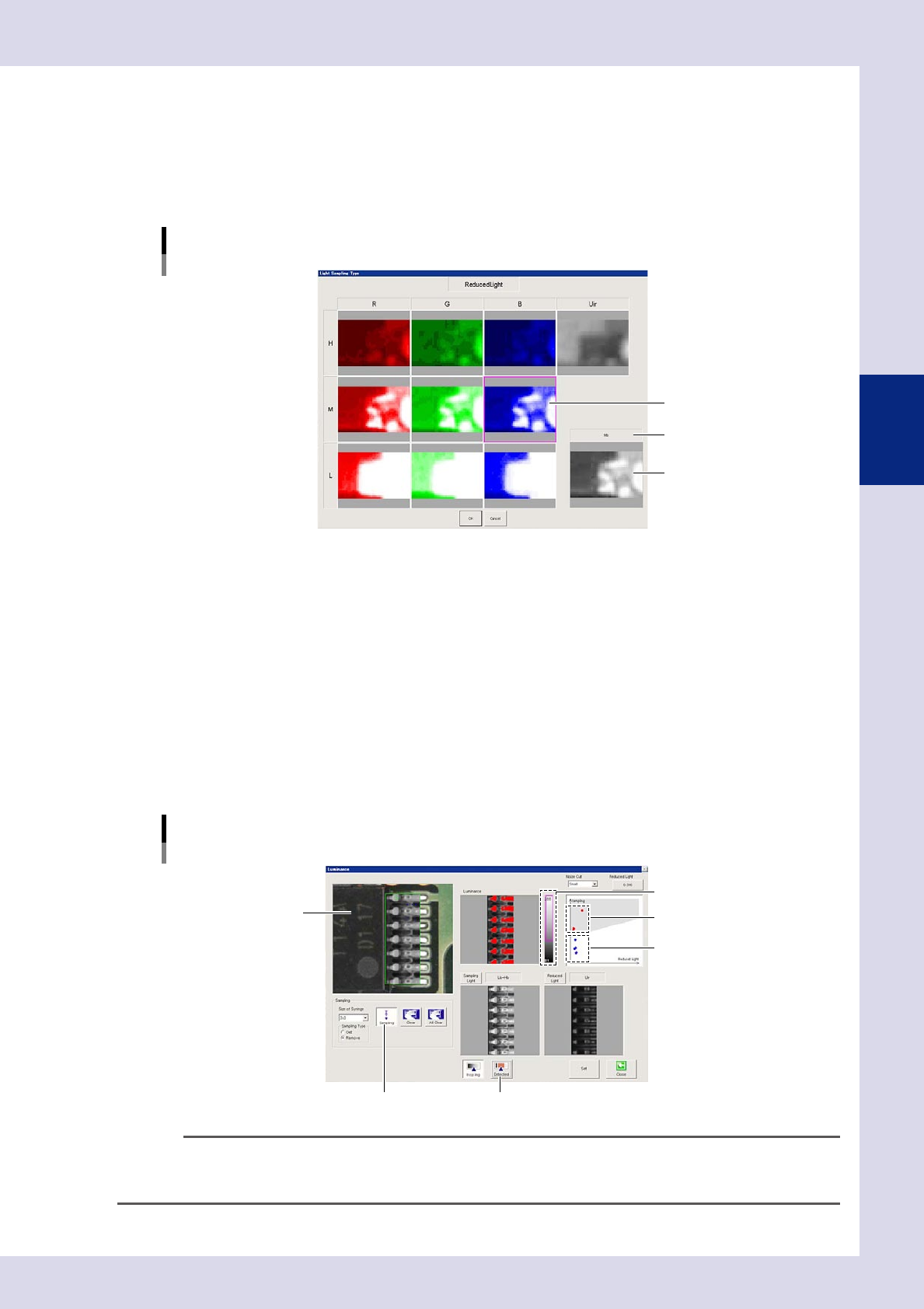 1. Press the [Reduced Light] button at the "Luminance" screen to open the light sampling type screen.