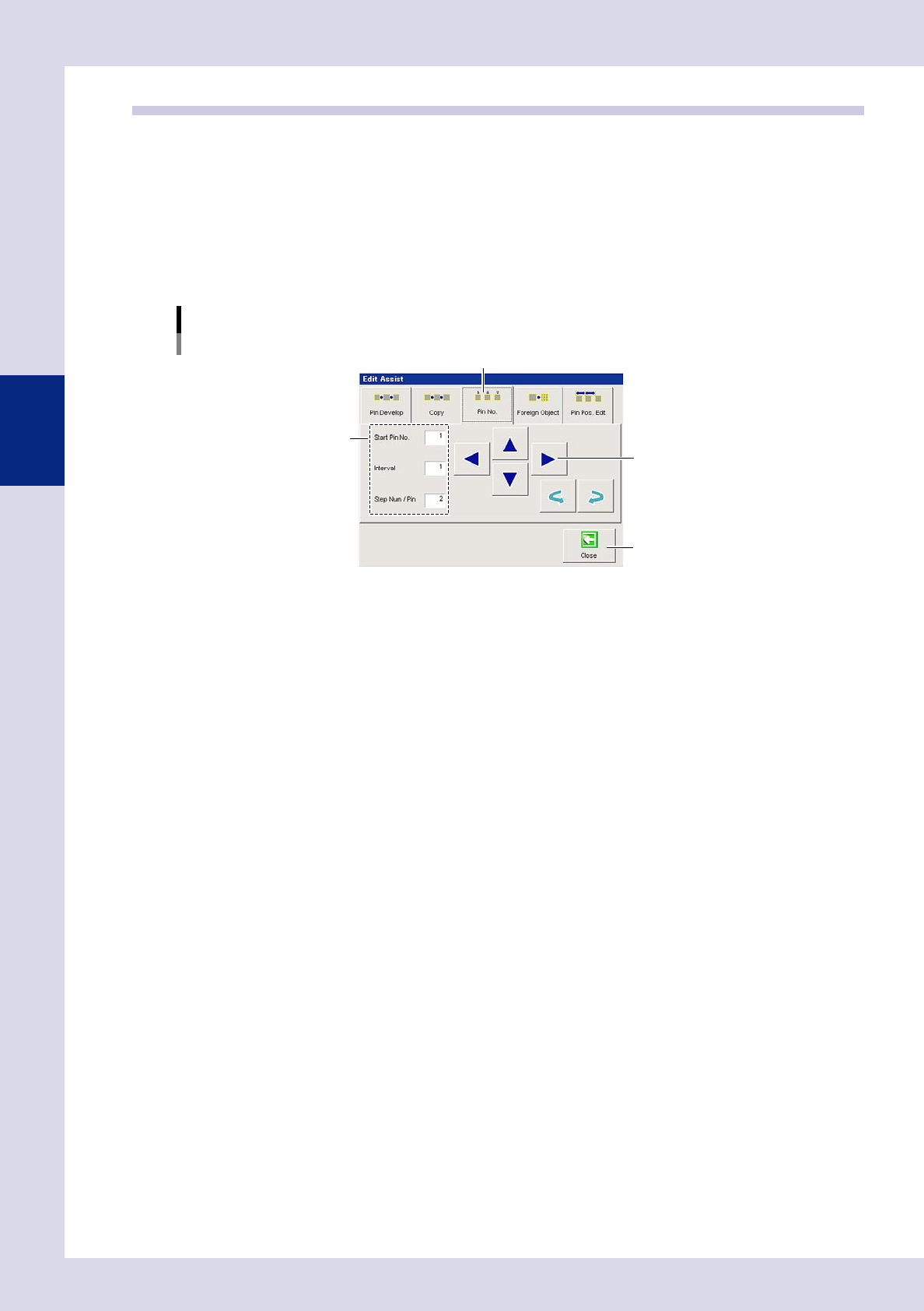 Press the [Edit Assist] button and open the "Pin No." tab.