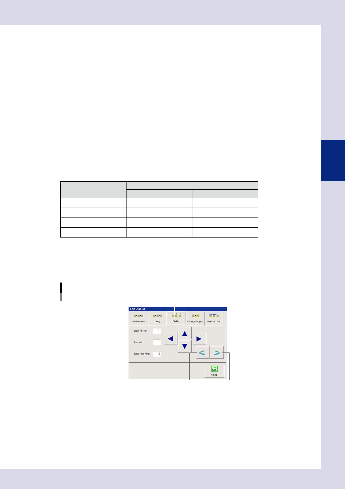 Press the [Edit Assist] button and open the "Pin Pos.Edit" tab.