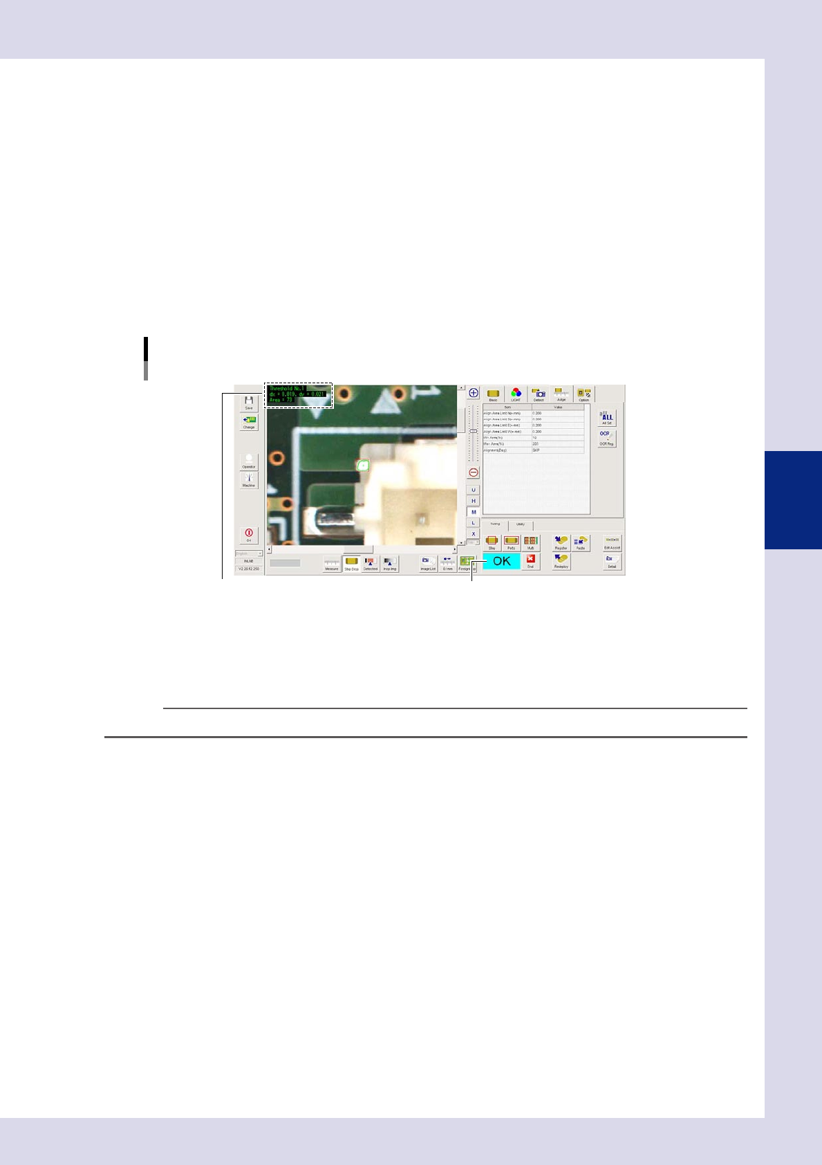 4-20 4 Inspection status 3 Set the "Judge" par ameters. Open the "Judge" tab and set the following param eters. "Judge" parameters Status: Position Correction 24429-P6-00 Position Correct Li…