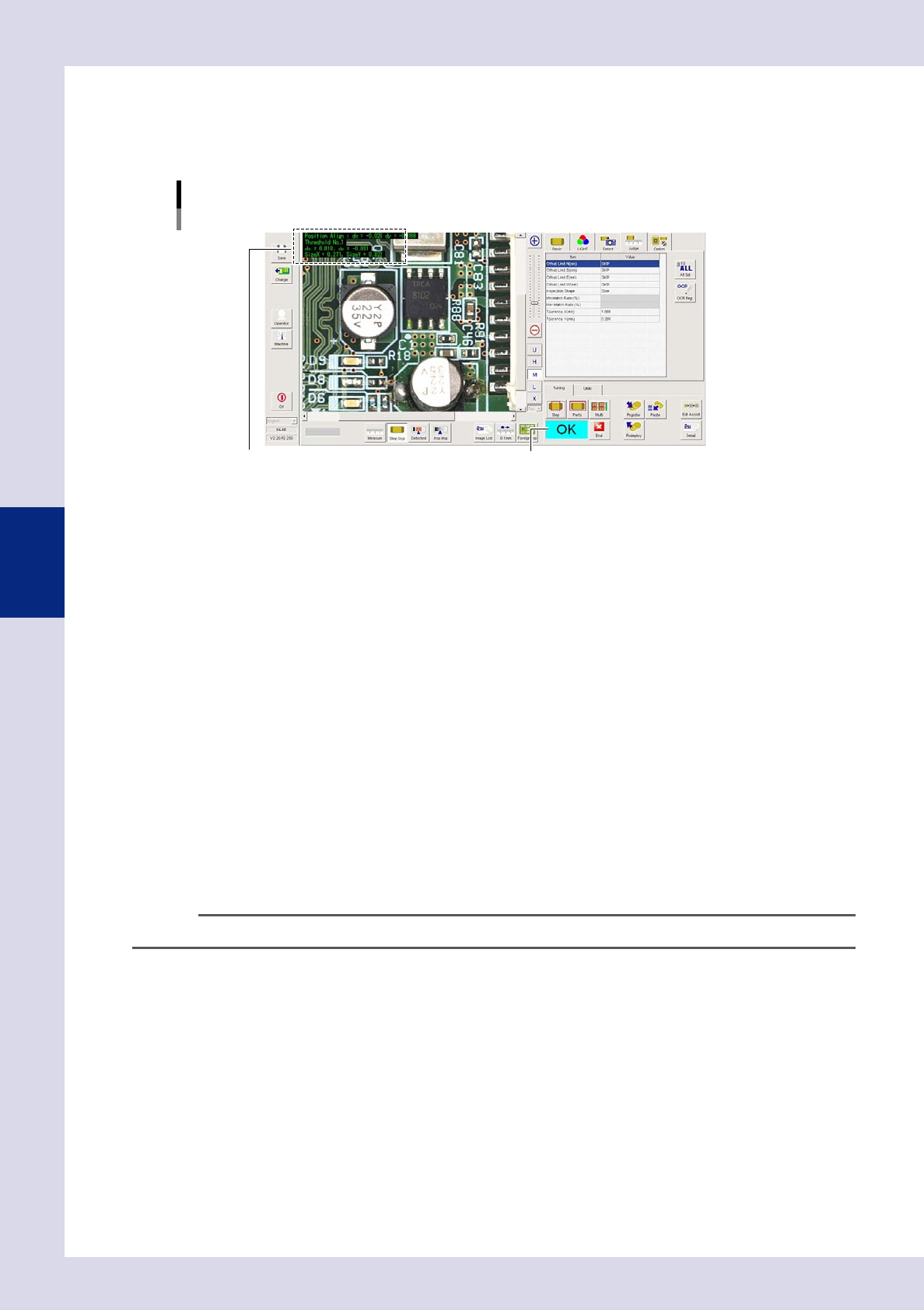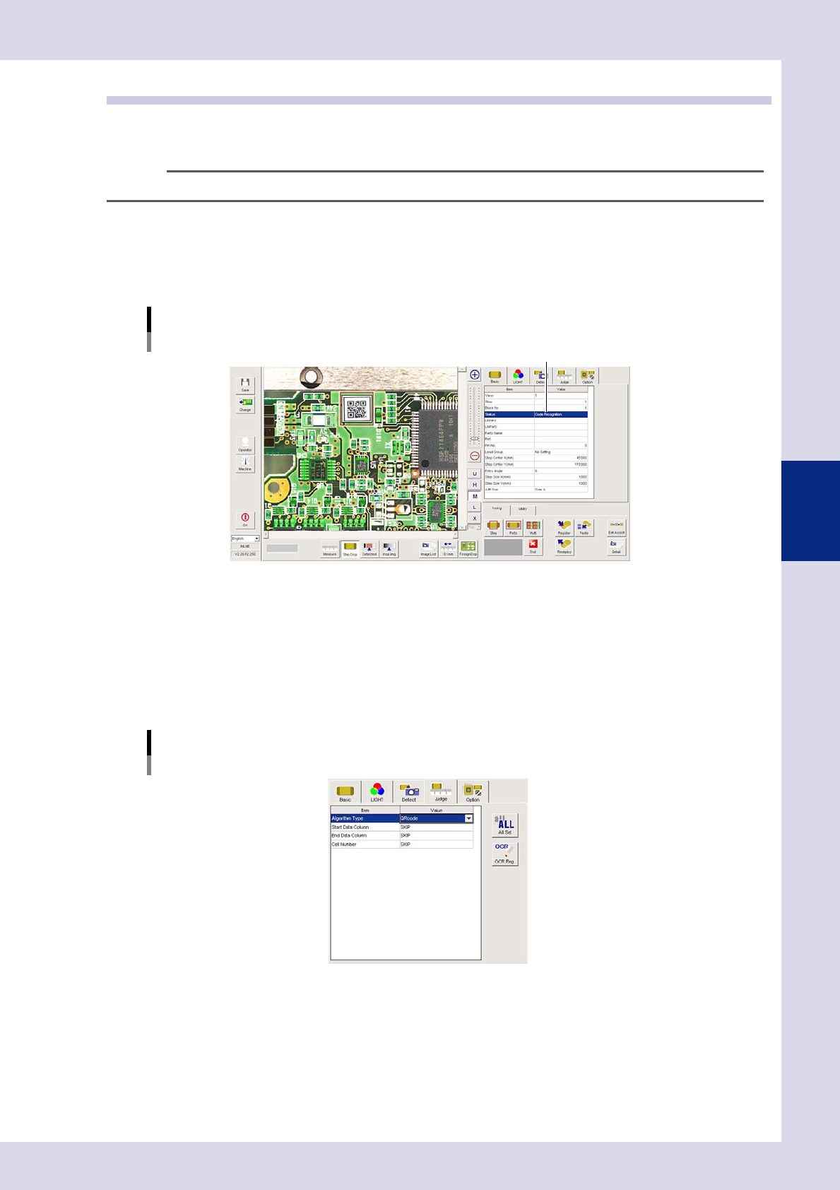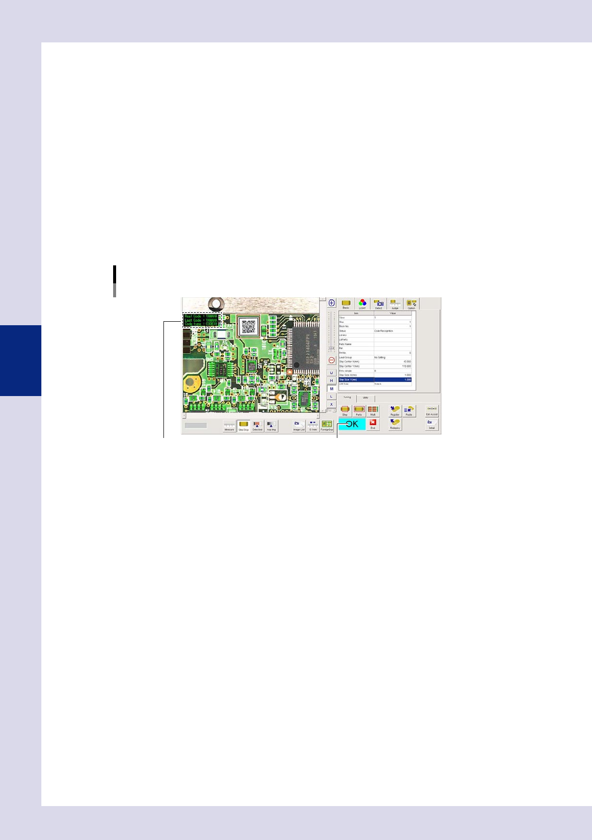 4-31 4 Inspection status 1.11 Code Recognition T his inspection status is used to read QR Codes and so on affixed to boards to identify boards IDs. T he board ID is the file name used when outputting SPC data, and w hen …
