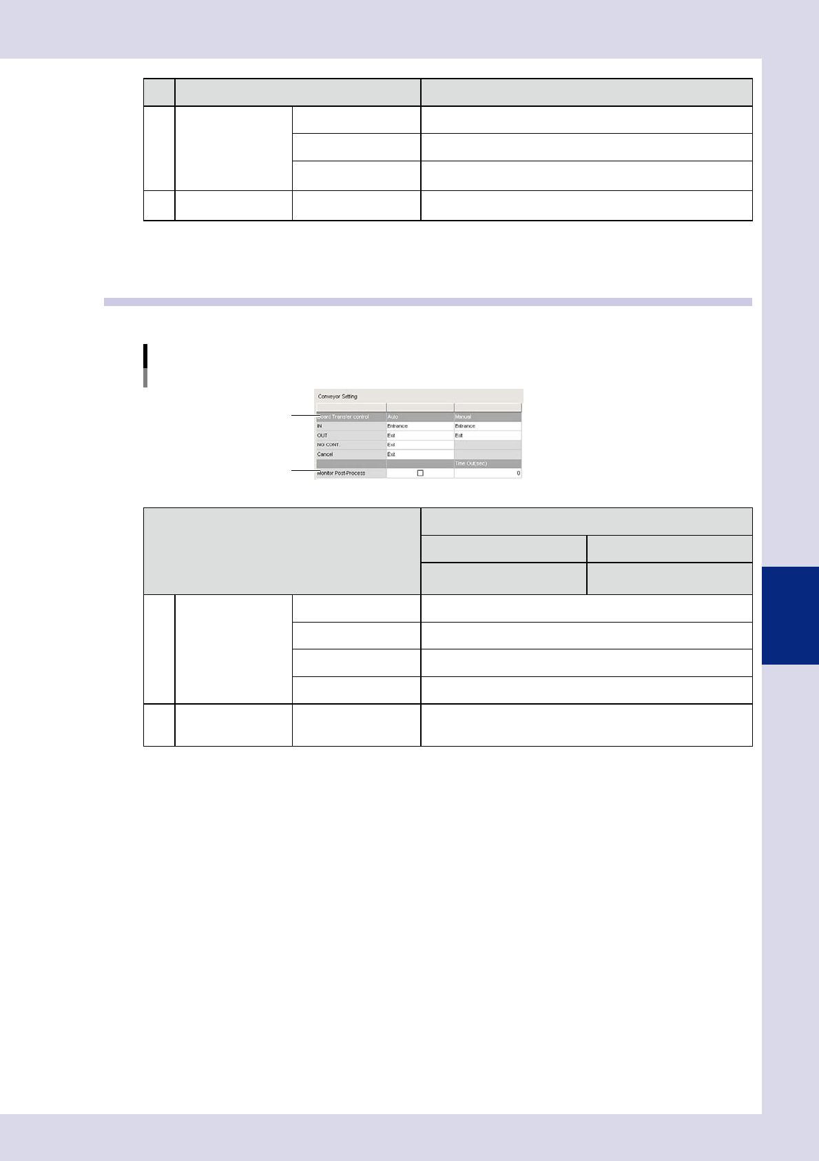 Conveyor transfer settings are used to set the board loading and unloading positions and so on.