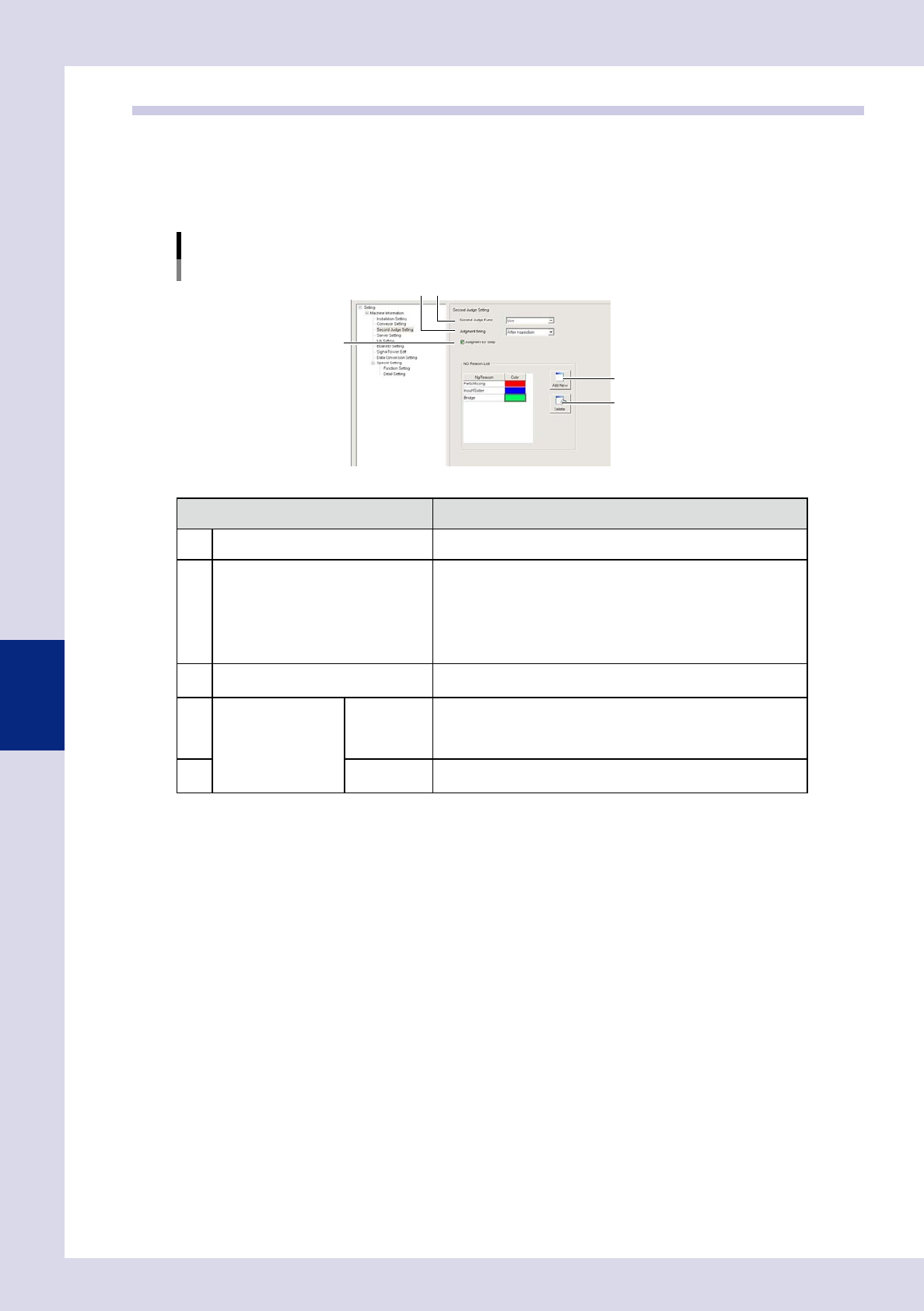 color in the "NG Reason List", the NG reasons used when performing judgment can be changed. The position