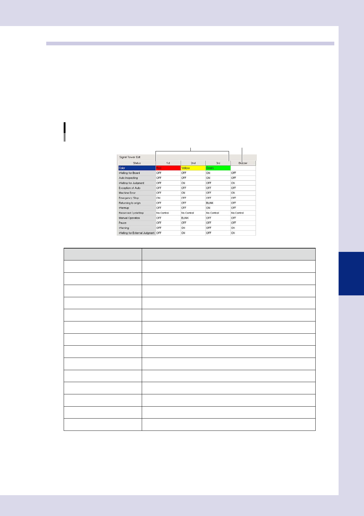 specified for the first lamp to the third lamp. (The signal tower lamps are arranged in order first lamp, second