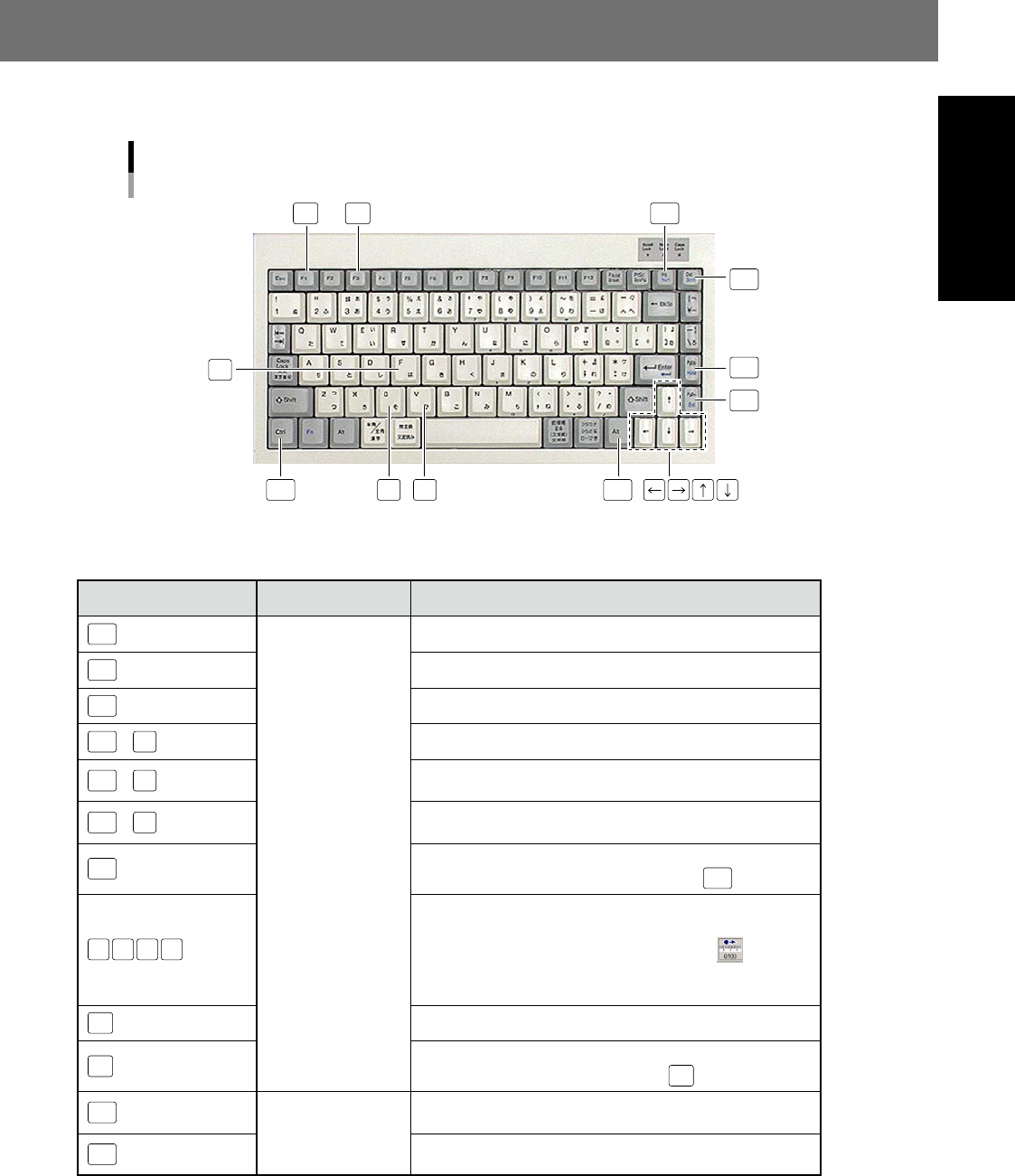 The following shortcut keys can be used at the [Data Edit] - "Step" screen or NG monitor screen, and at the