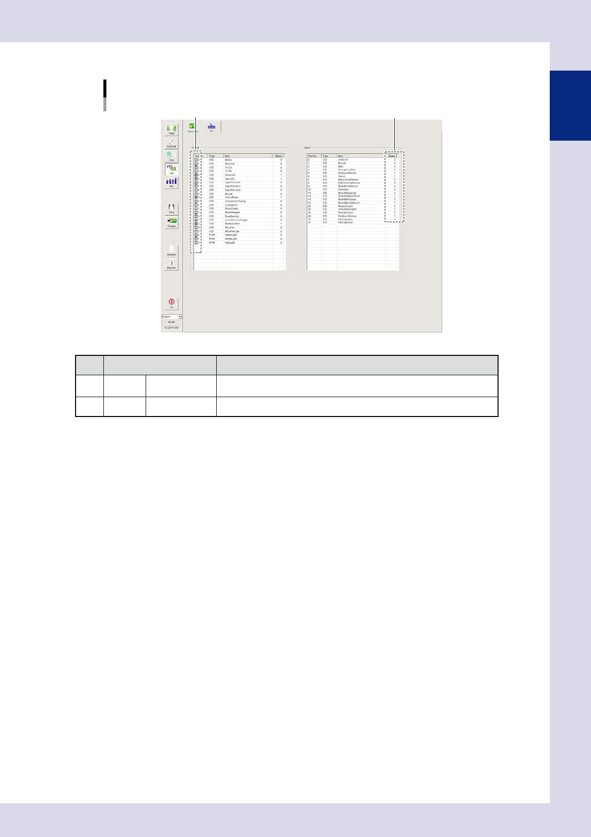 2 Input Status Displays the item ON and OFF status.