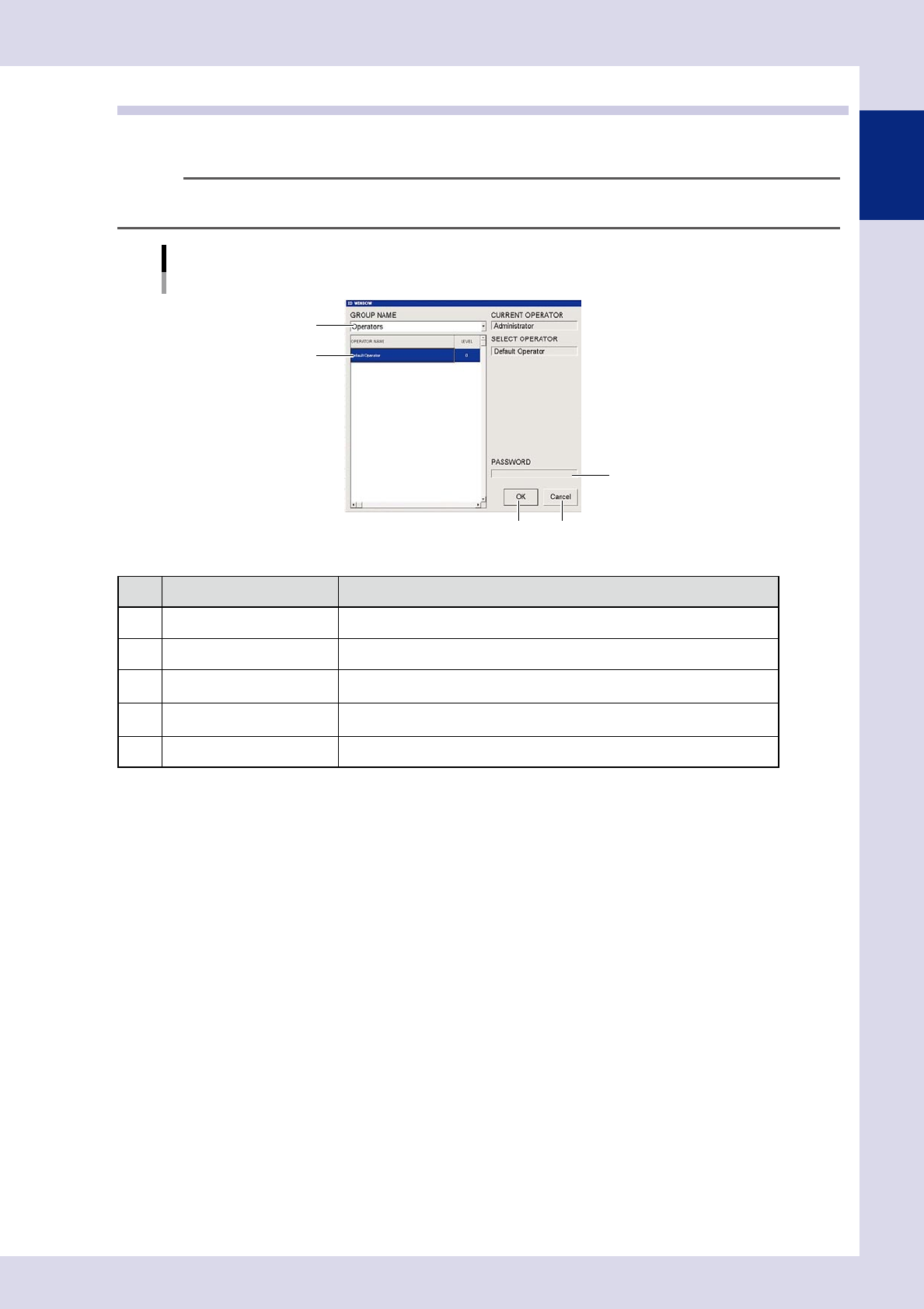 screen, refer to Chapter 5, "1. Operator management", in this manual.