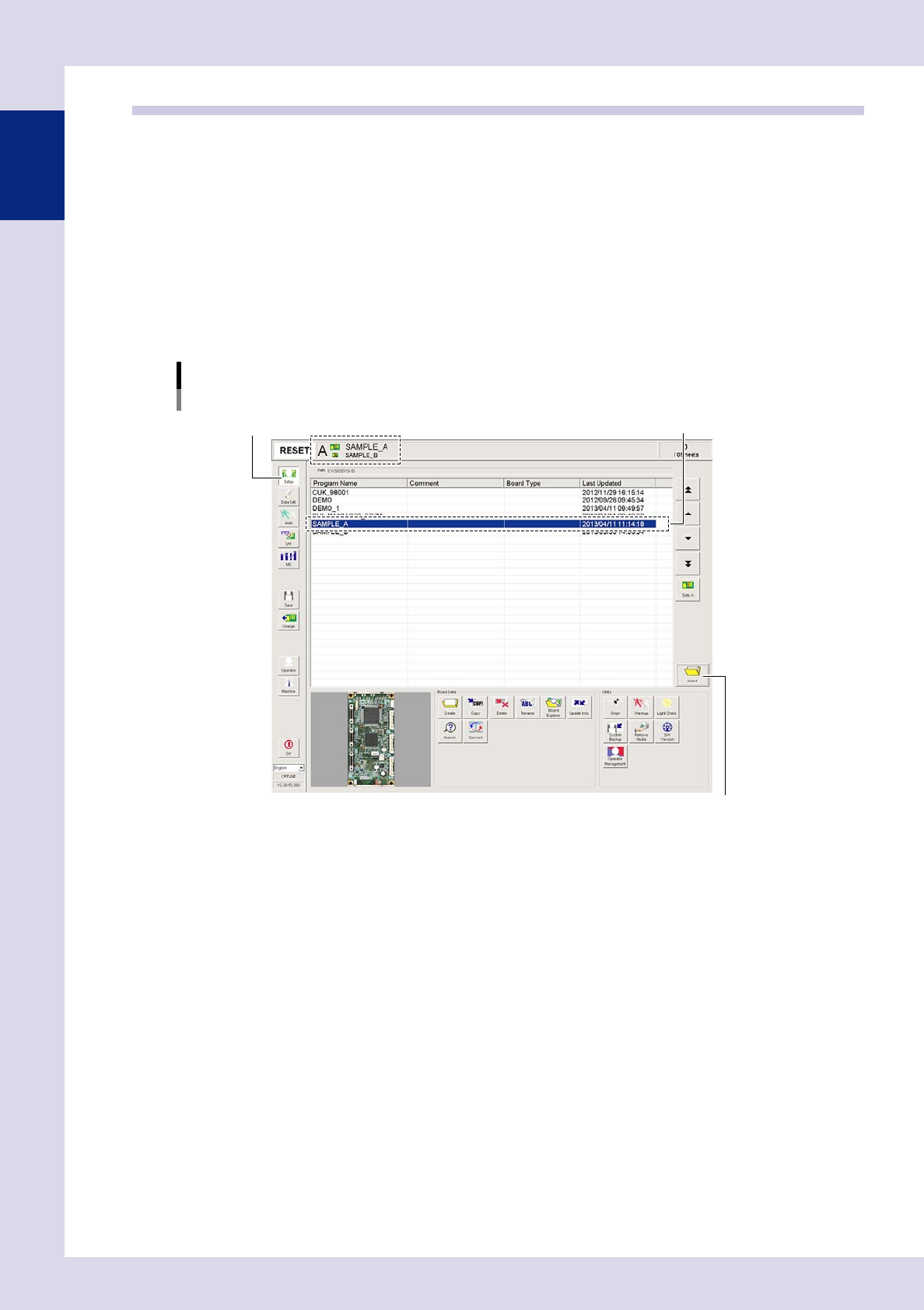 2. Press the [Change] button. Set the board on the conveyor with the surface to be inspected first