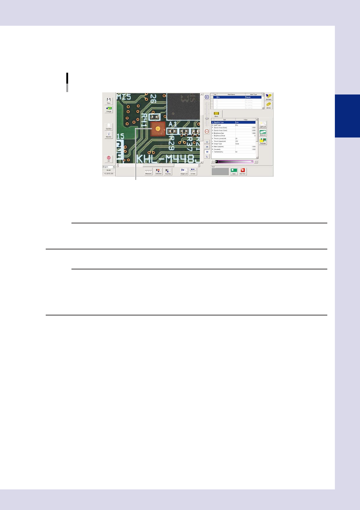 2-22 2 Creating inspection pr ograms 2.4.3 Setting fiducial mark CUSTOM lighting If unable to clearly recognize fiducial marks in the "lighting list image", use "CUST OM lighting". 1 Set the "D. …