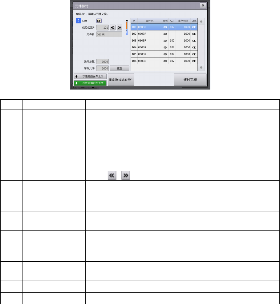 确认一次性更换台车上升后,完成元件核对作业,关闭对话框。