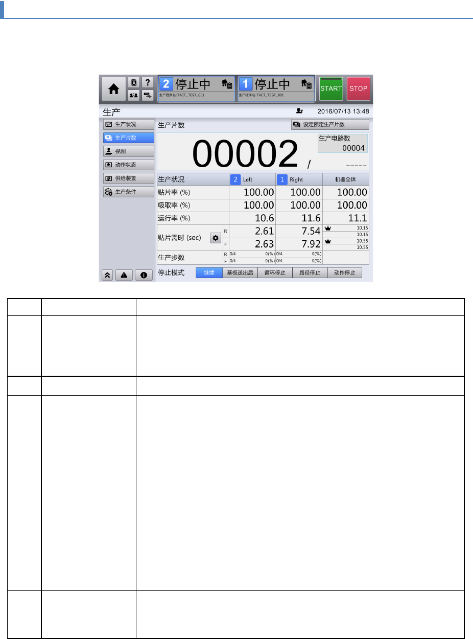 生产片数 用大号字符显示当前生产中的基板生产完成基板片数(左侧・黑色字