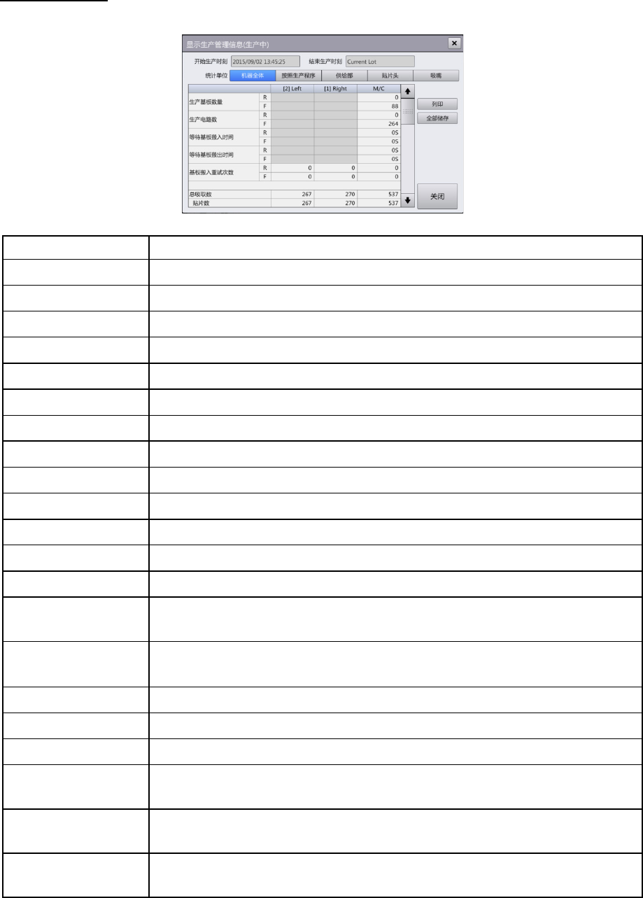 触摸[生产管理信息]画面中的[表示明细],显示各项目的[生产管理信息显示]对话框,可确认统计的所有生