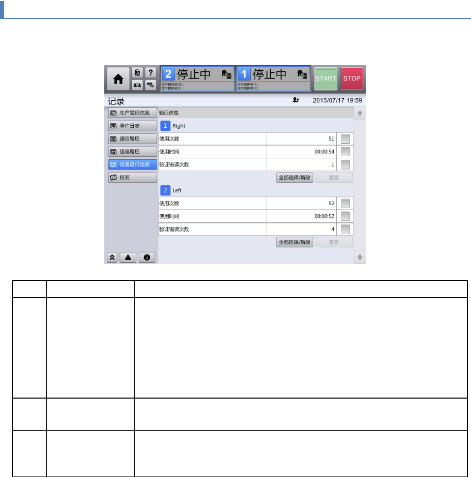 [设备运行信息]画面,仅当用户级别为[SUPERVISOR]或[MAINTENANCE]时,才会显示。
