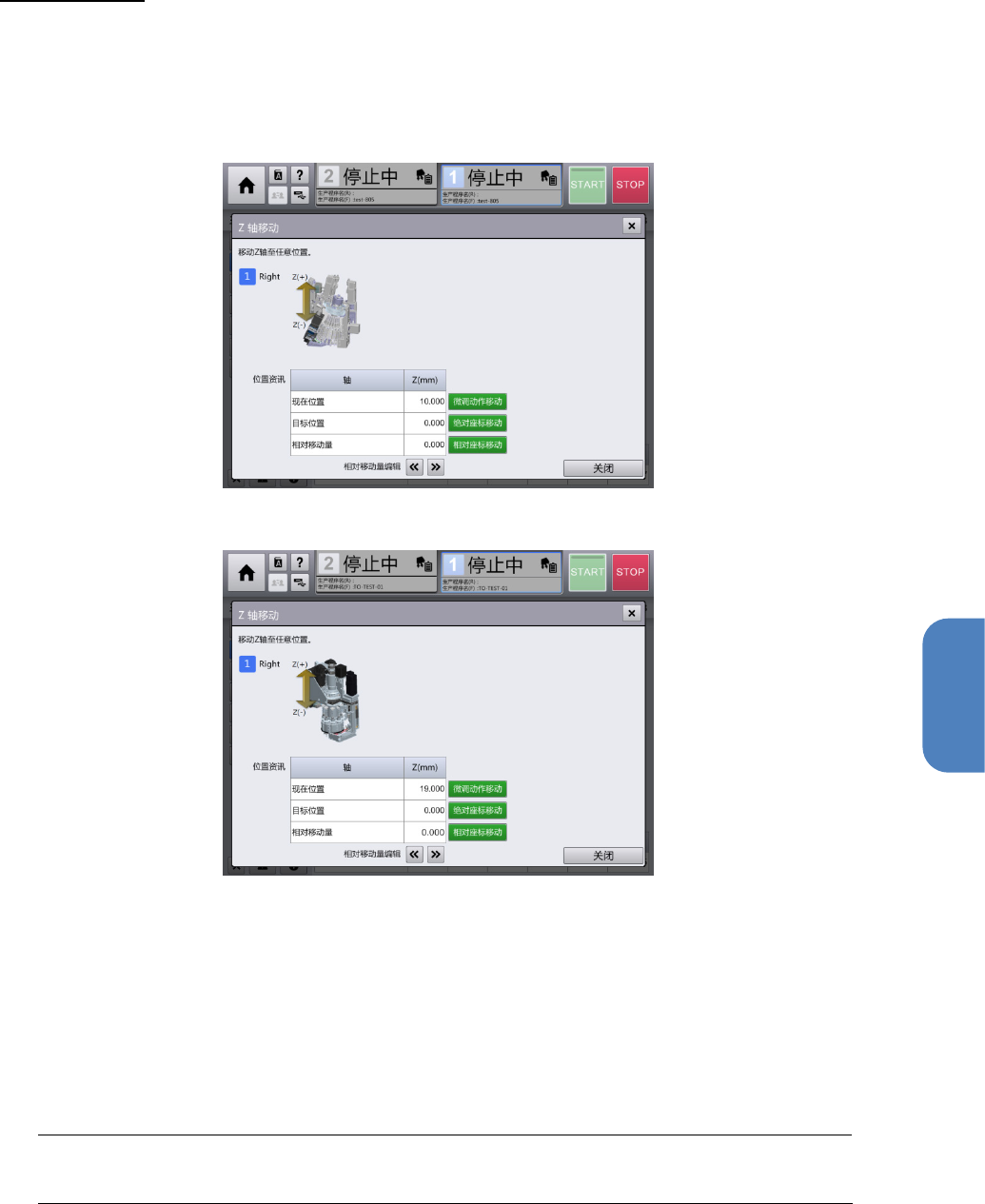 Z 轴将从当前位置按[相对移动量]中指定的距离移动。