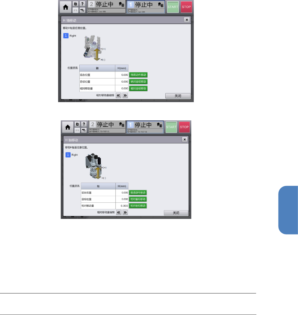 触摸[贴片头控制]画面的[H],显示[H 轴移动]对话框。