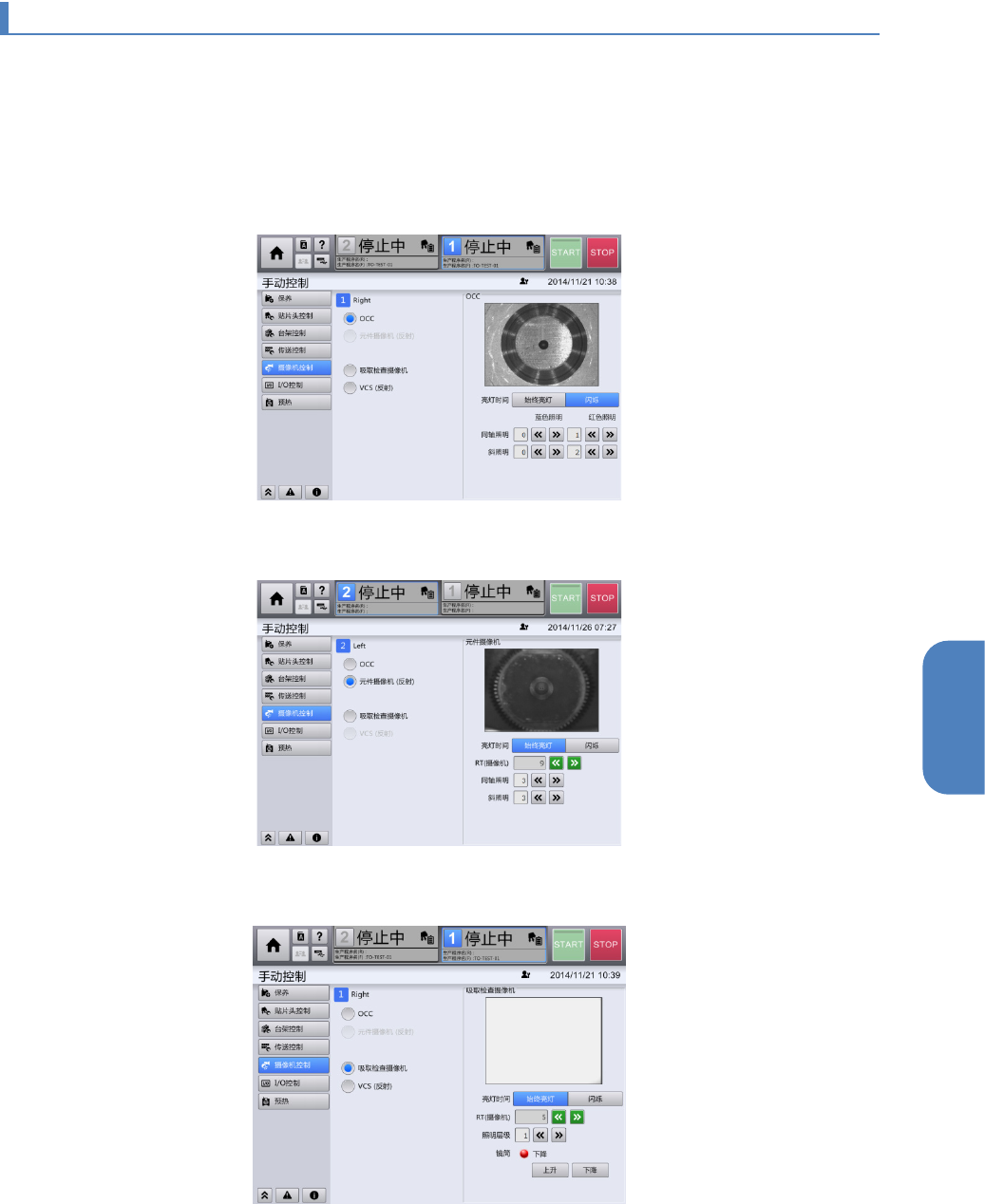 镜筒 对于通用贴片头的吸取检查摄像机,触摸[上升]、[下降]按钮上下移动