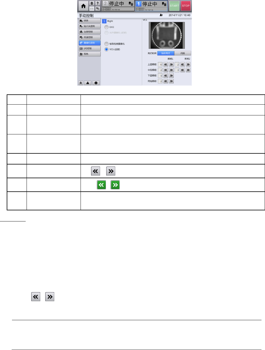 显示选择的摄像机的图像,亮灯时间,照明层级的调整按钮。