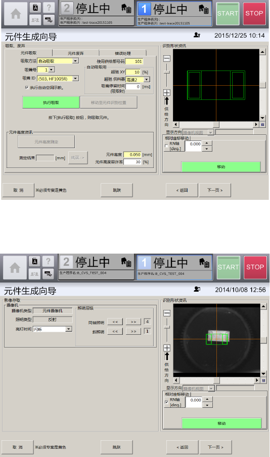 根据摄像机图像制作、编辑元件数据时,要用吸嘴吸取元件。