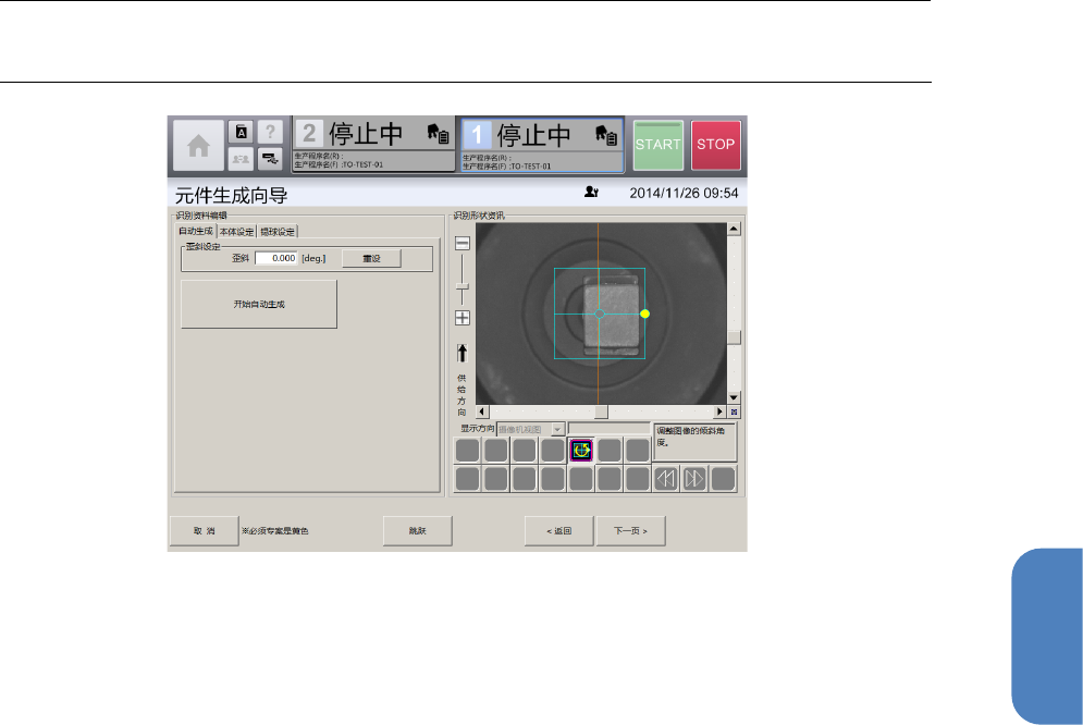 [自动生成]选项卡,可在[吸取、废弃]画面中吸取有元件时,自动从摄像机图像制作脚元件的识别数