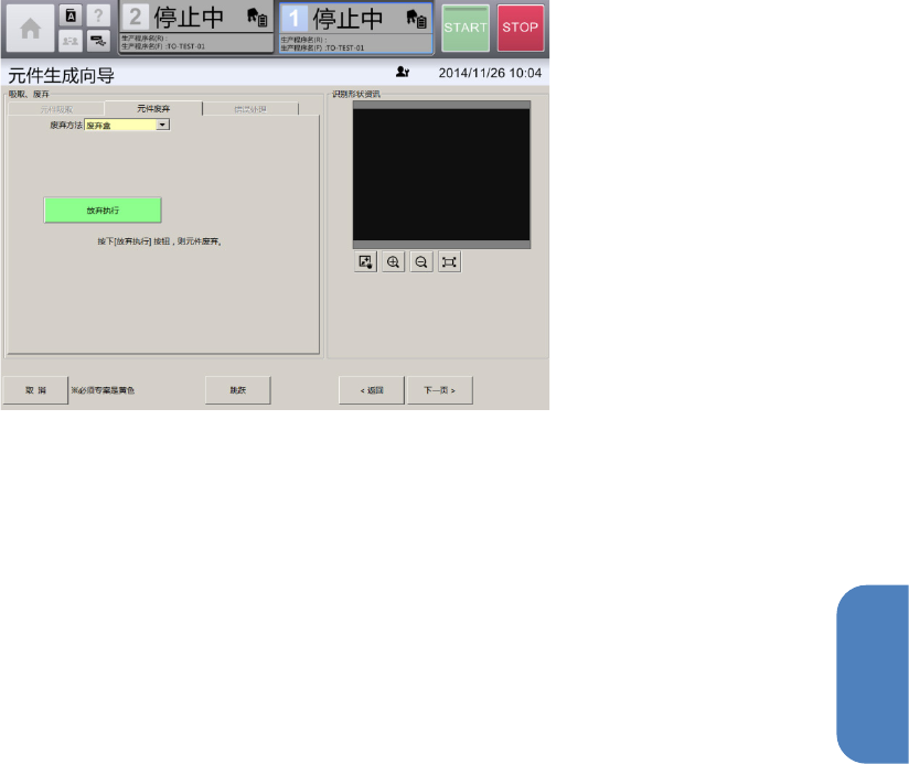 如果在贴片头吸取元件的过程中,则显示[吸取、废弃]画面。