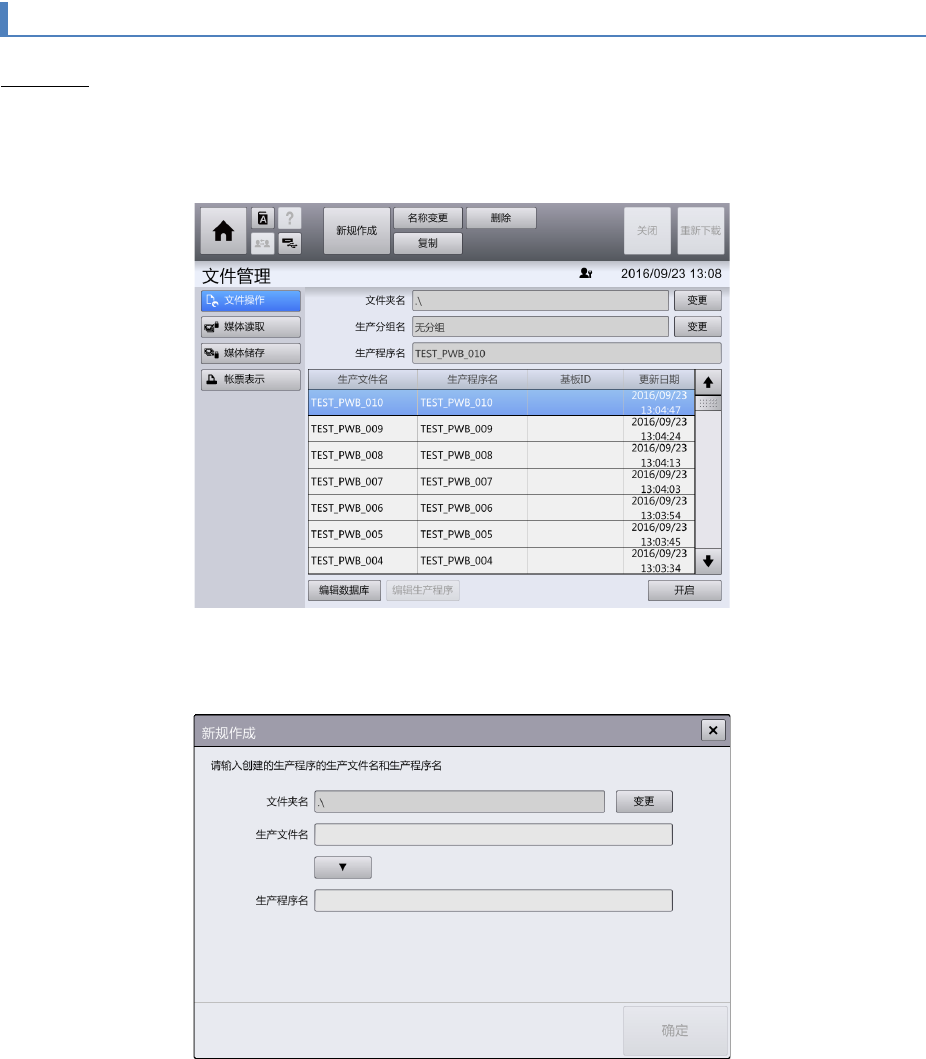 在[安排] – [支援准备] 画面中生产程序已被载入时,[文件操作]画面不能使用。