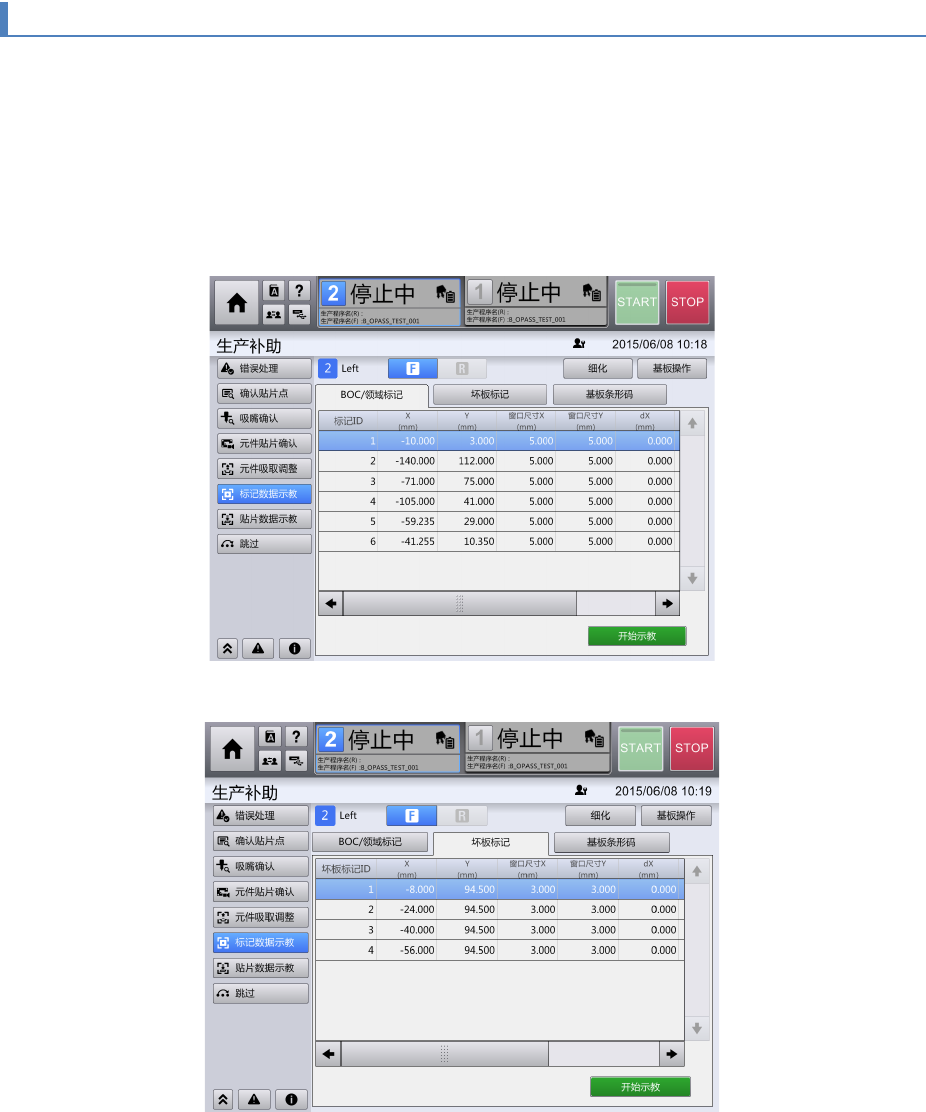 触摸[生产补助]菜单中的[标记数据示教],显示[标记数据示教]画面。