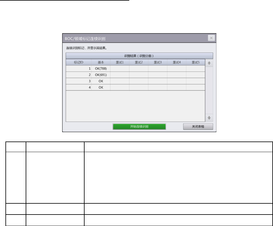 连续识别结果列表 列表显示各 BOC/领域标记的连续识别结果。