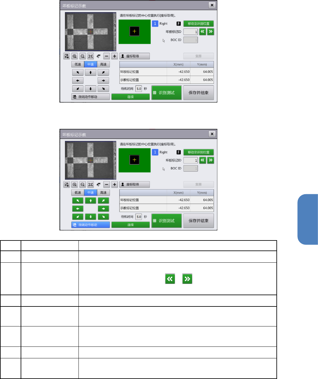 移动至识别位置 将摄像机的中心移动到坏板标记的中心位置(执行示教后为标记示教