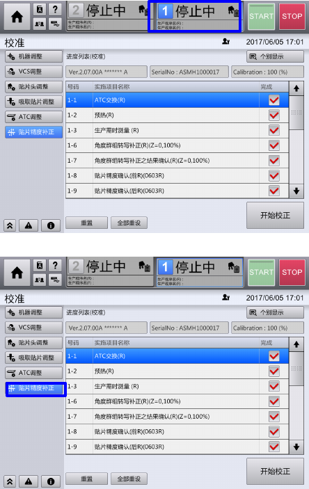选择『校准』画面内『贴片精度补正』。