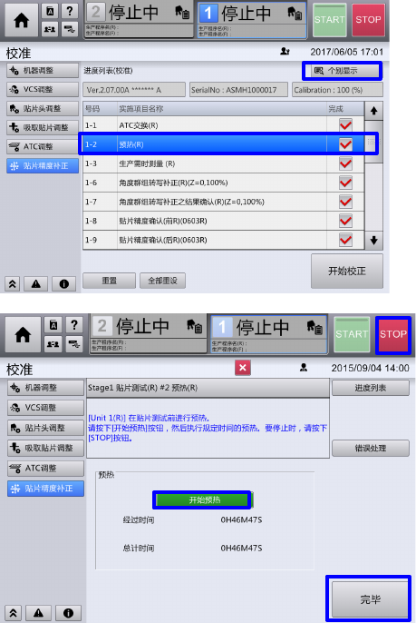 实施后规定时间预热,按『STOP』按钮