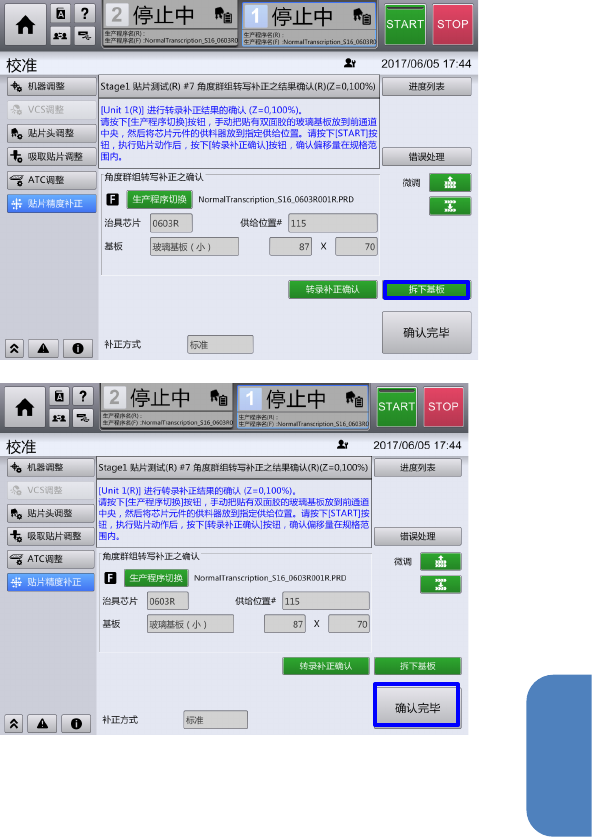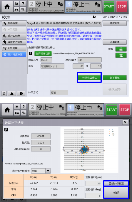 所有元件贴片完成,选择『转录补正确认』