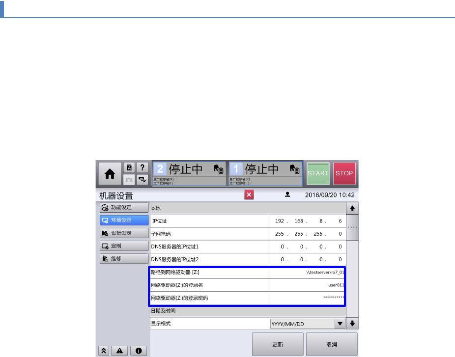 显示[机器设置] - [环境设定] 画面,输入[路径到网络驱动器 [Z:]]。
