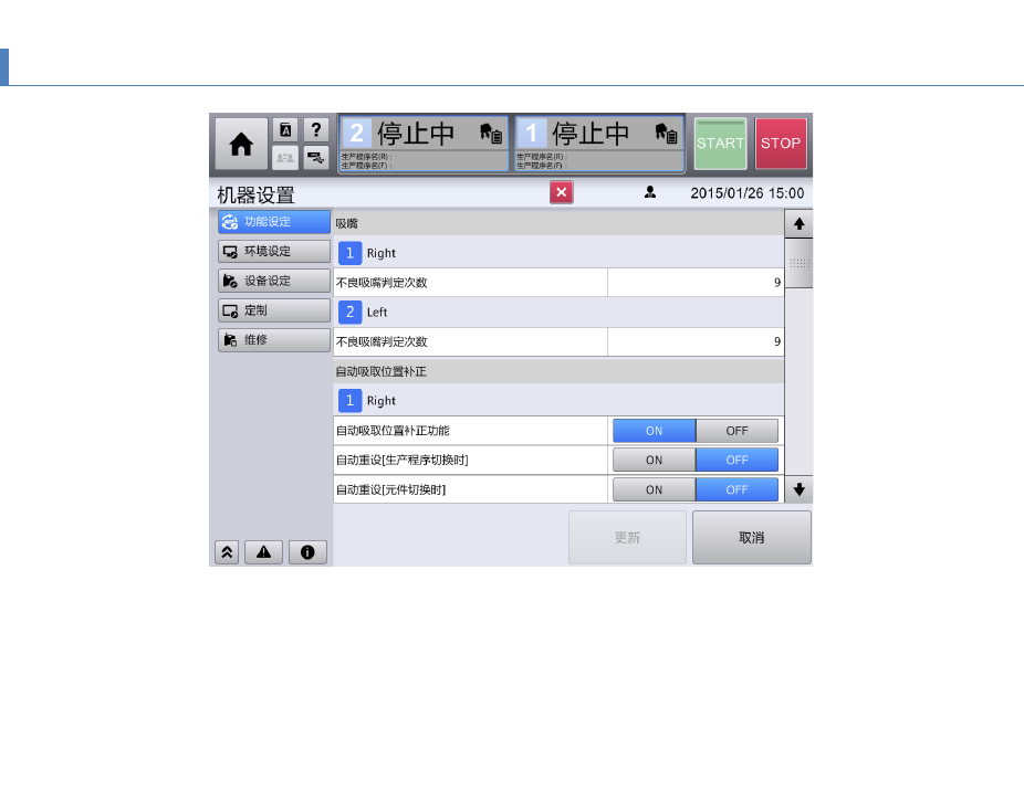 吸嘴资料库的编辑在用户级别为 [MAINTENANCE] 时可以使用。