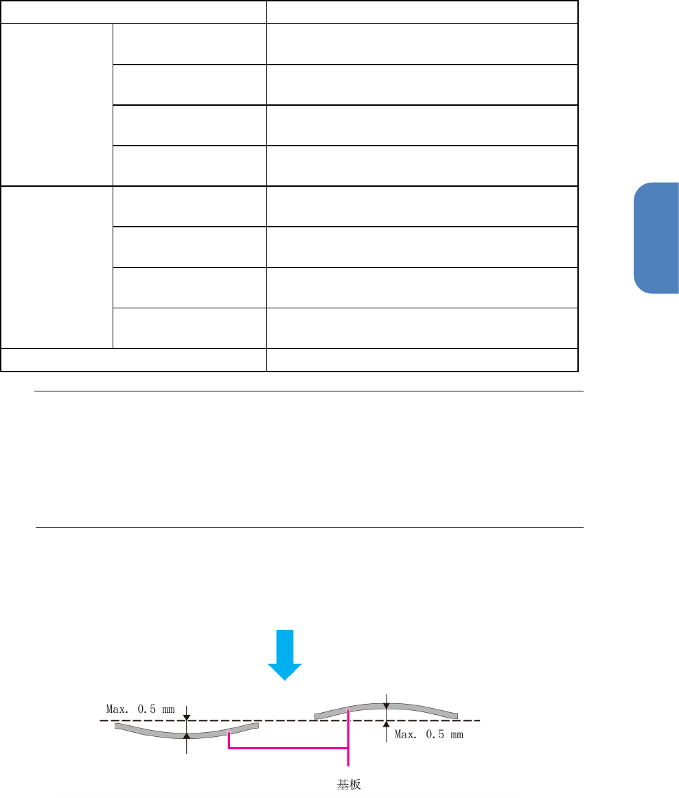 第 2 章 系统概要 2- 5. 印刷基板设 计基准 20 ■ 单通道传送时(通常基板 模式 ) 项目 规格 可使用基板尺寸 无基板停止器 最小: 50mm × 50m m 最大: 350 mm × 450mm 基板停止器 (1) (61mm 位置 ) 最小: 50mm × 50m m 最大: 236mm × 45 0m m 基板停止器 (2) (118mm 位置 ) 最小: 50mm × 50m m 最大: 293mm × 450m …