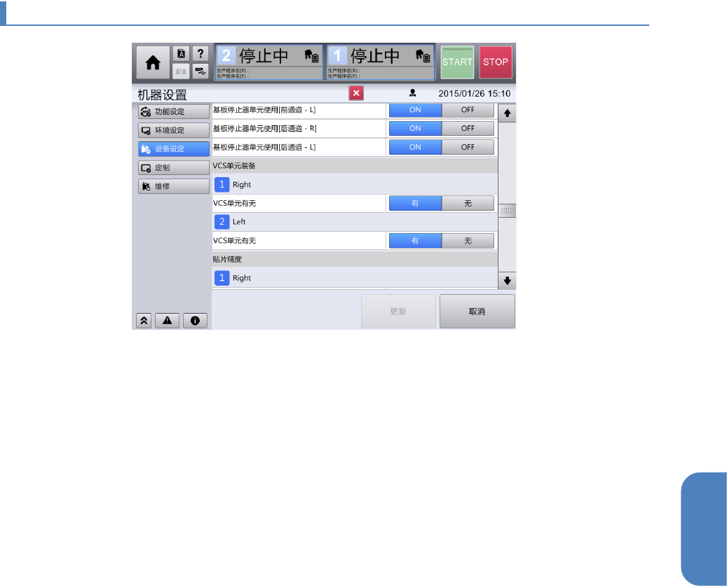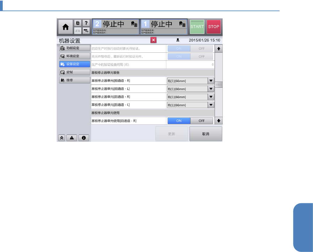 各站点上,要在装置中将默认设定使用基板停止器时,需选择 ON。