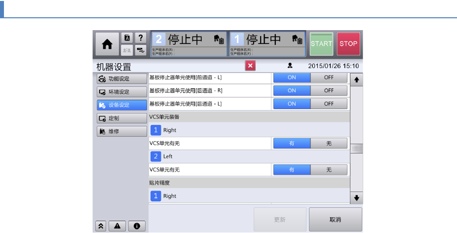 另外,通过来自生产支援系统的主机通信功能,可在机器端读出使用停止器的设定。