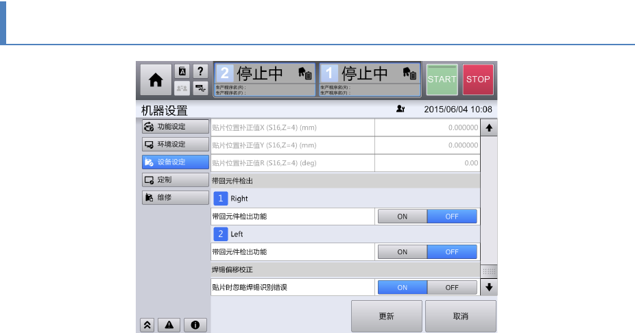 在准备实施中,以及在文件操作画面打开生产程序时,不能变更设定。