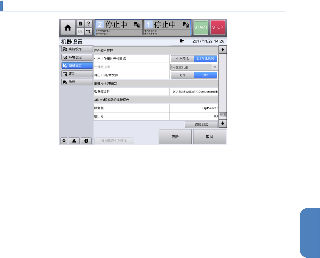 将设定从[DB 在此机器]变更为[生产程序],根据装置内 DB 的元件数据,更新 D:\asm\PwbData 以下的全