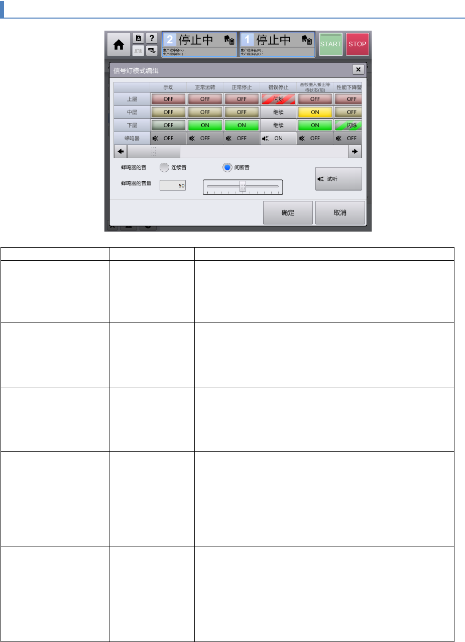 信号灯亮灯模式、及蜂鸣器的 ON/OFF。