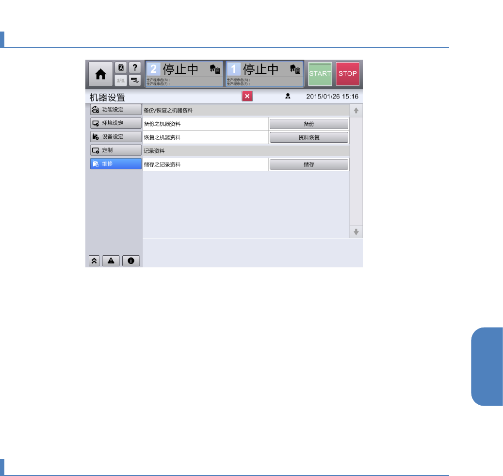 读入在机器资料列表中选择的机器资料,对必要的机器资料进行复原作业。