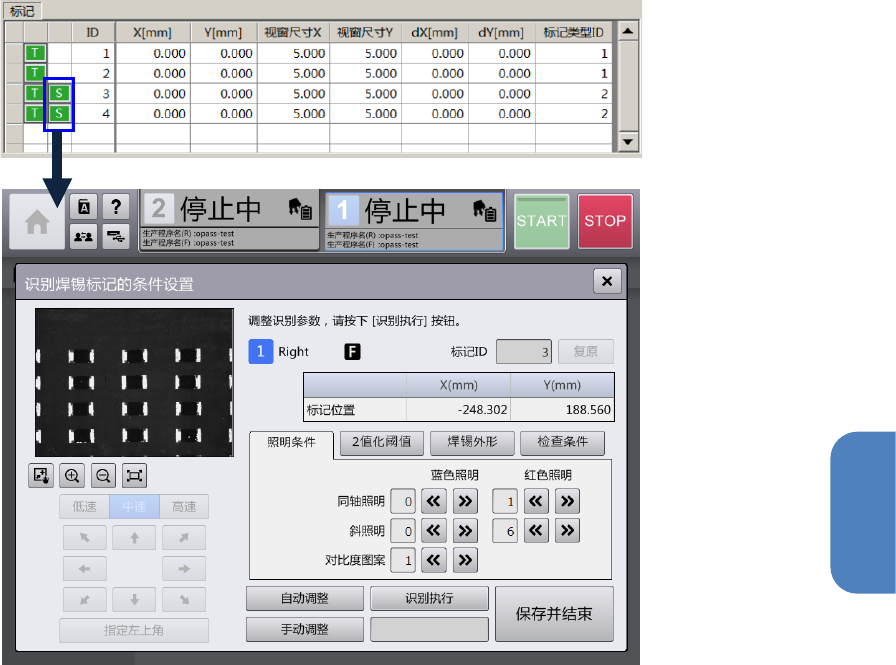 关于[识别焊锡标记的条件设置] 对话框请参见「4-18-6 标记示教」。